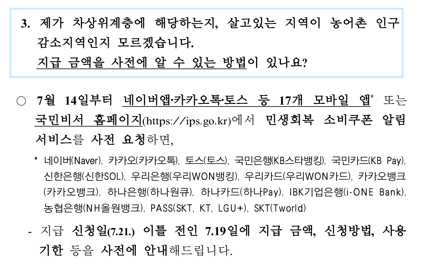 ✔ 국민비서 알림 신청 시 7월 19일에 대상 여부 및 금액 문자로 안내받음
