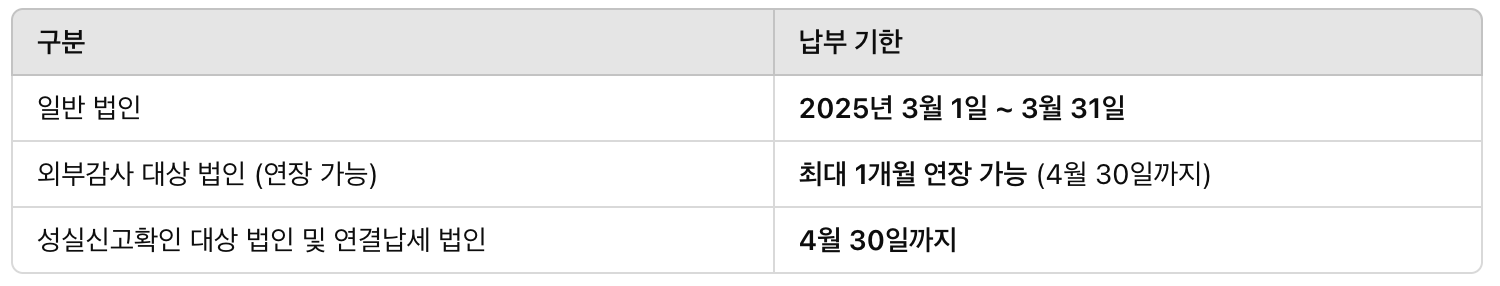 법인세 신고 시 납부 기한