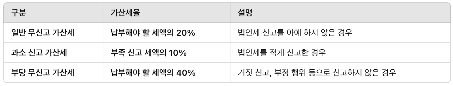 5️⃣ 법인세 신고 시 가산세는 언제 부과되나요?