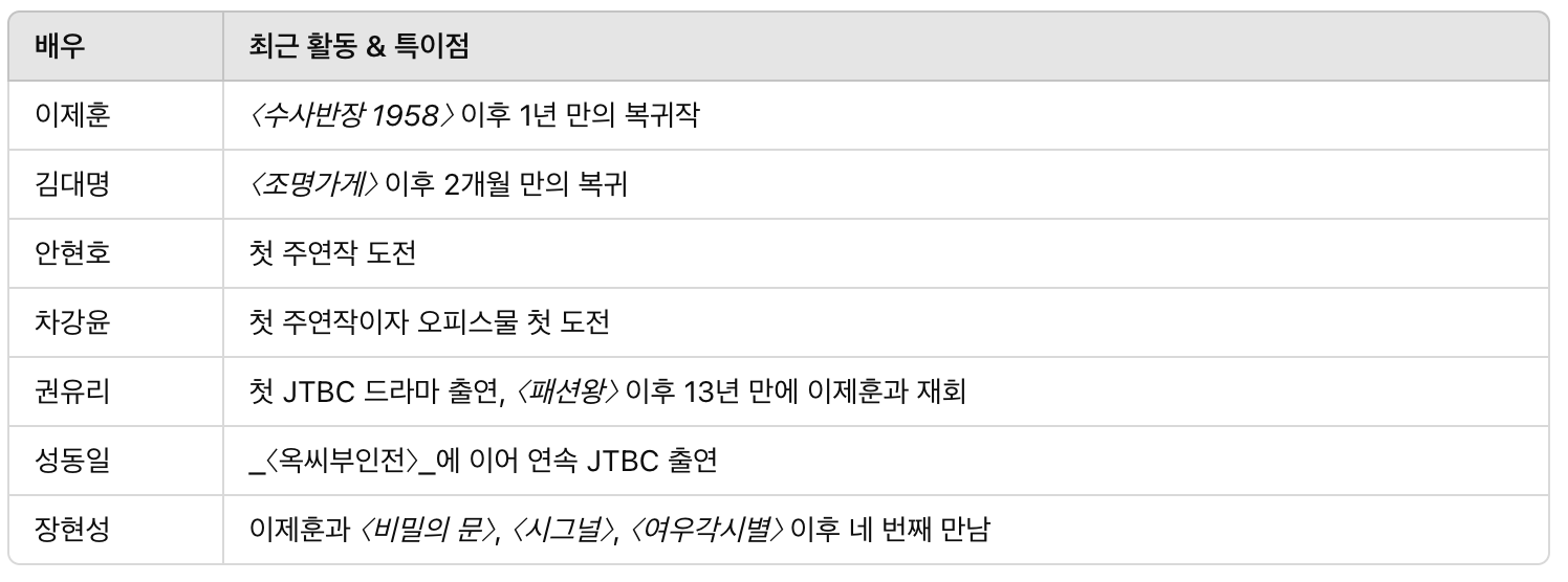 특히 많은 배우들이 JTBC에서 첫 출연을 하며, 다양한 작품에서 재회하는 모습도 주목할 만하다.
