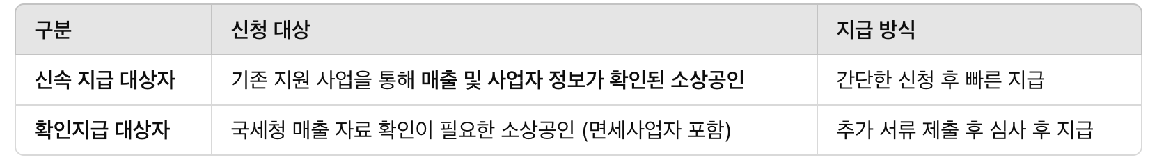 - 신속 지급 대상자 vs 확인 지급 대상자
