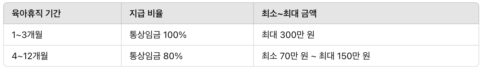 ✔ 초기 육아휴직자에게 더 많은 금액 지원됨