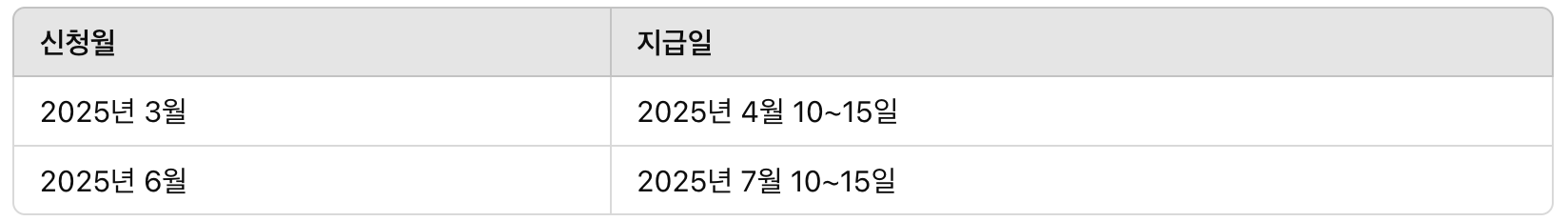 - 신청 시기 및 지급일 변경 사항 반영