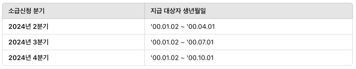 - 지난 분기(2024년 2~4분기) 미신청자는 소급 신청 가능