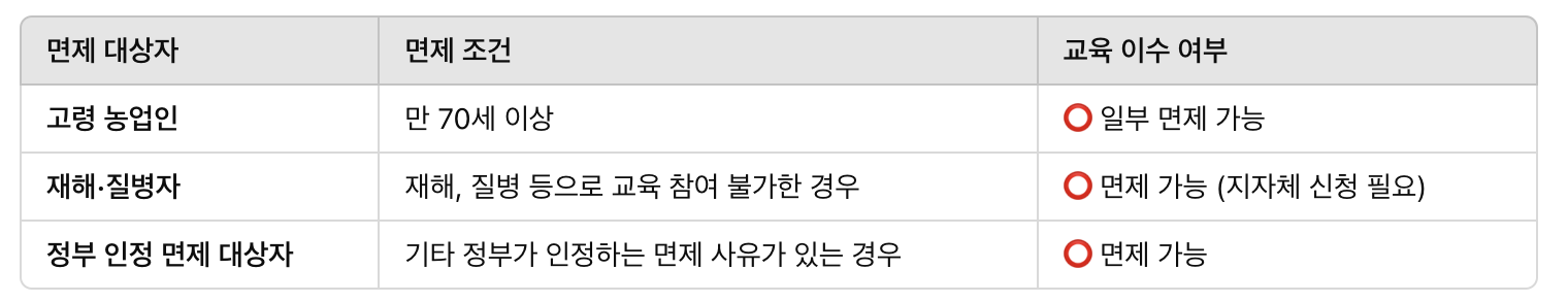 - 기존 신청자 중 교육 이수 의무가 부여된 농업인