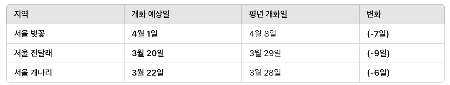 ✅ 서울 벚꽃 개화 예상일: 4월 1일 (평년 대비 7일 빠름!)