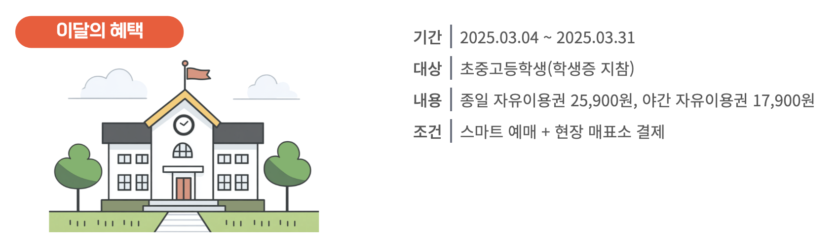 초/중/고등학생 대상 (학생증 지참 필수)