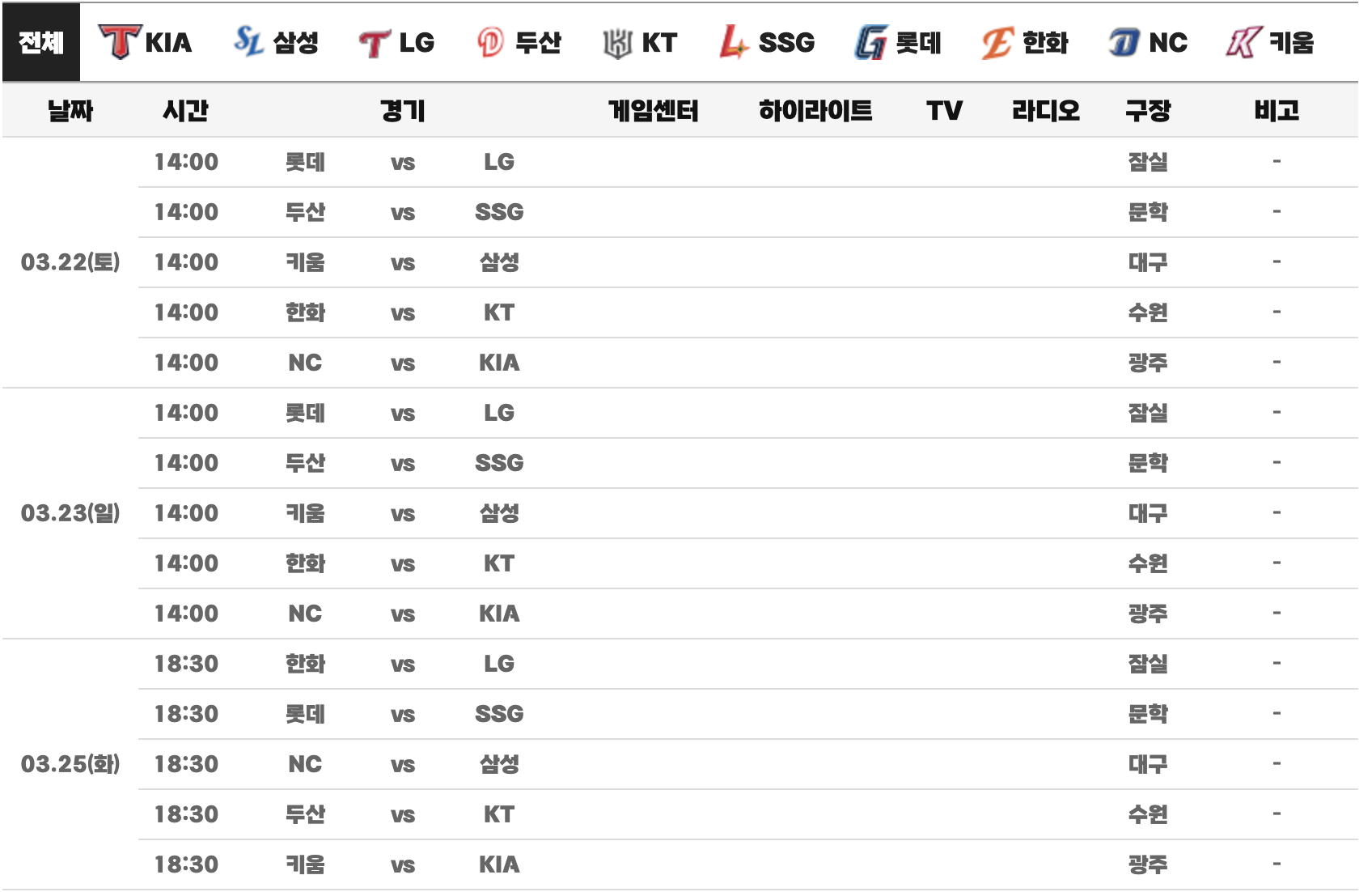 ▶ LG, KIA, 두산 등 강팀들의 개막전 결과 주목!