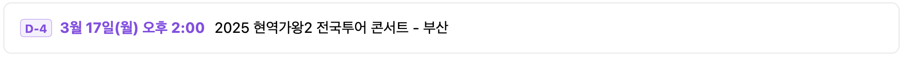 현역가왕2 부산 콘서트 티켓 오픈일 2025년 3월 17일 (월) 오후 2시입니다.