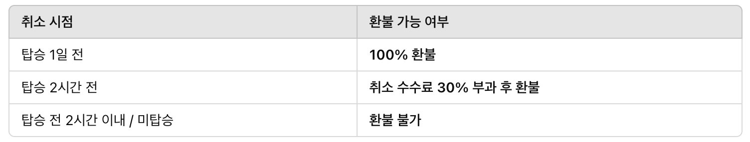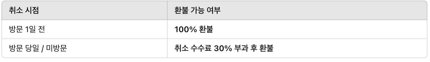취소 및 환불 규정 안내