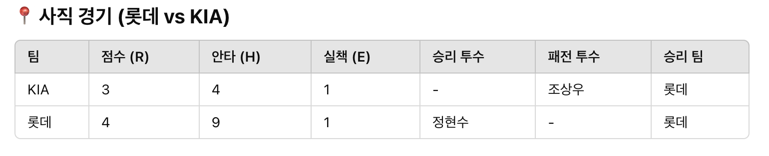 - 롯데, KIA와의 접전 끝에 4-3 승리